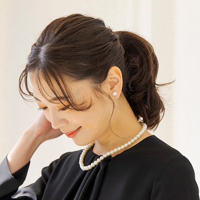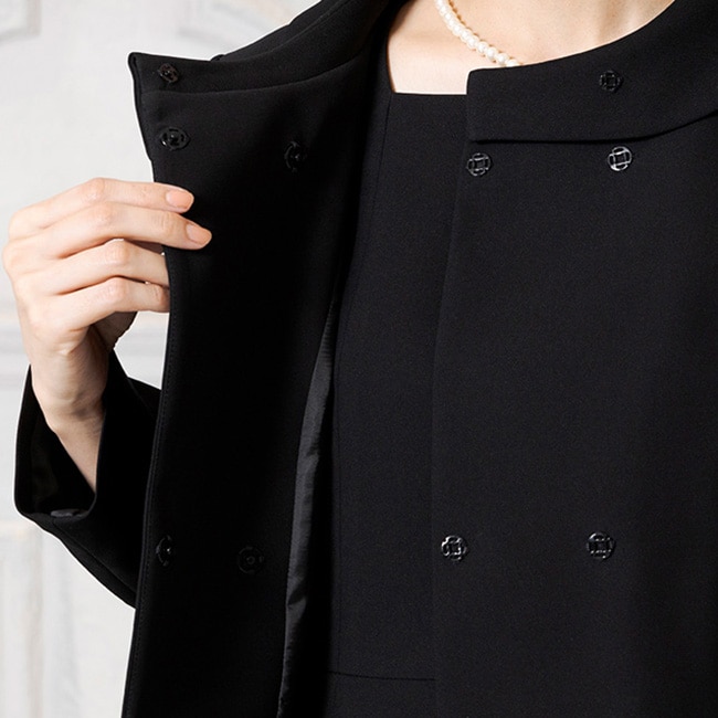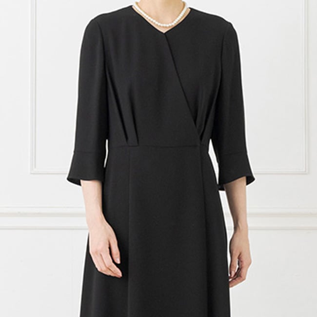 着物の方も多いですが、 喪服を選ぶ場合は丈が長めのデザインがおすすめです。 高級品でなくても構いませんので、 必ずバッグ・靴・ネックレスを トータルでコーディネートしましょう。